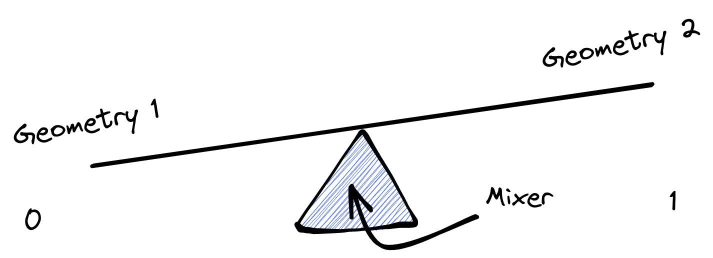 These uniforms are then used to interpolate between the different geometries using the mix GLSL function: